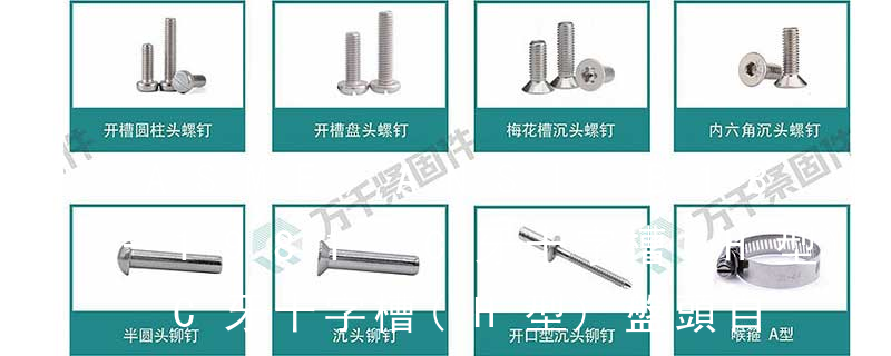 外扳擰:六角、六角法蘭面、六角凸緣、六角花形等;內扳擰:一字槽、十字槽H型(Phillips)、十字槽Z型(Pozidriv)、十字槽F型(Frearson)、四方槽(Scrulox)、復合槽、內花鍵、內六角花形(梅花槽)、內三角、內六角 2、自切自攻螺釘我國標準稱為“自攻螺釘刮削端”,螺紋為自攻螺紋或機螺紋,十字槽也是“H”型。自切自攻螺釘有以下幾種型式:十字槽盤頭自切自攻螺釘,十字槽沉頭自切自攻螺釘。十字槽半沉頭自切自攻螺釘,六角頭自切自攻螺釘。